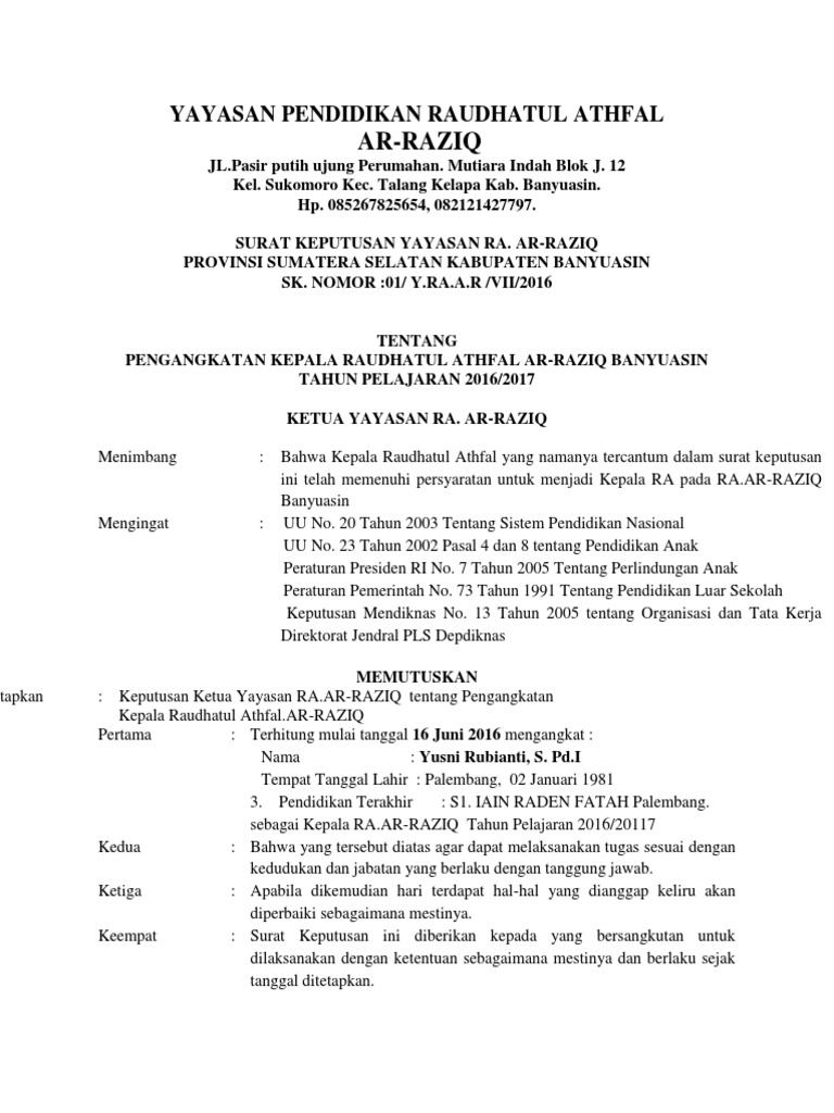 Surat keputusan untuk Raudhatul Athfal adalah dokumen penting yang dibutuhkan oleh sekolah-sekolah Islam di Indonesia. Dokumen ini berisi peraturan dan tata tertib yang harus diikuti oleh para siswa dan guru di Raudhatul Athfal. Dalam artikel ini, kami akan memberikan panduan lengkap mengenai Surat Keputusan untuk Raudhatul Athfal pada tahun 2023.